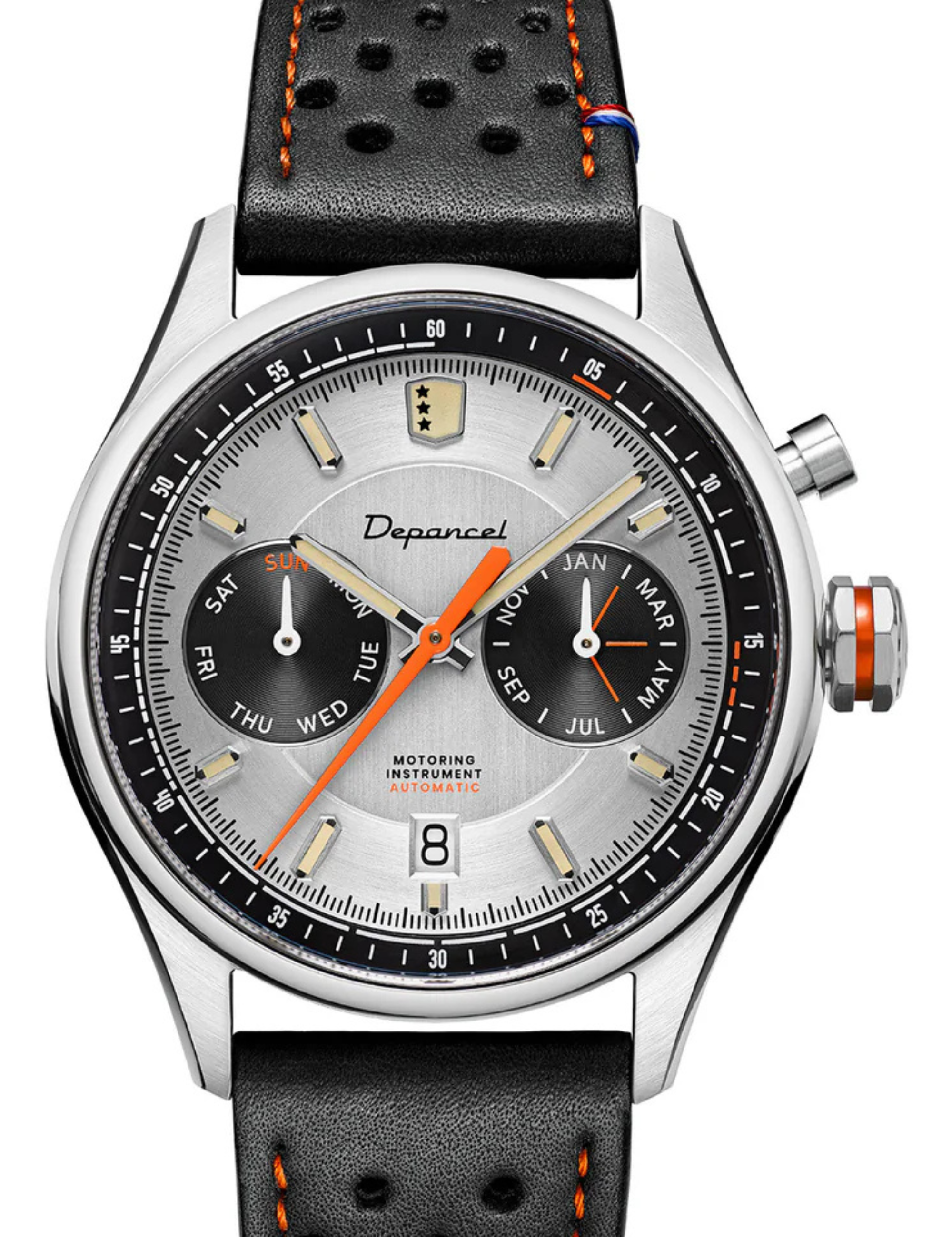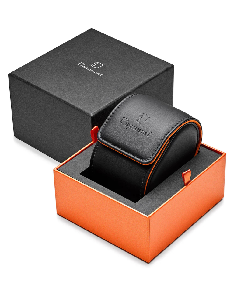Band: Racing Black Orange Leather Strap