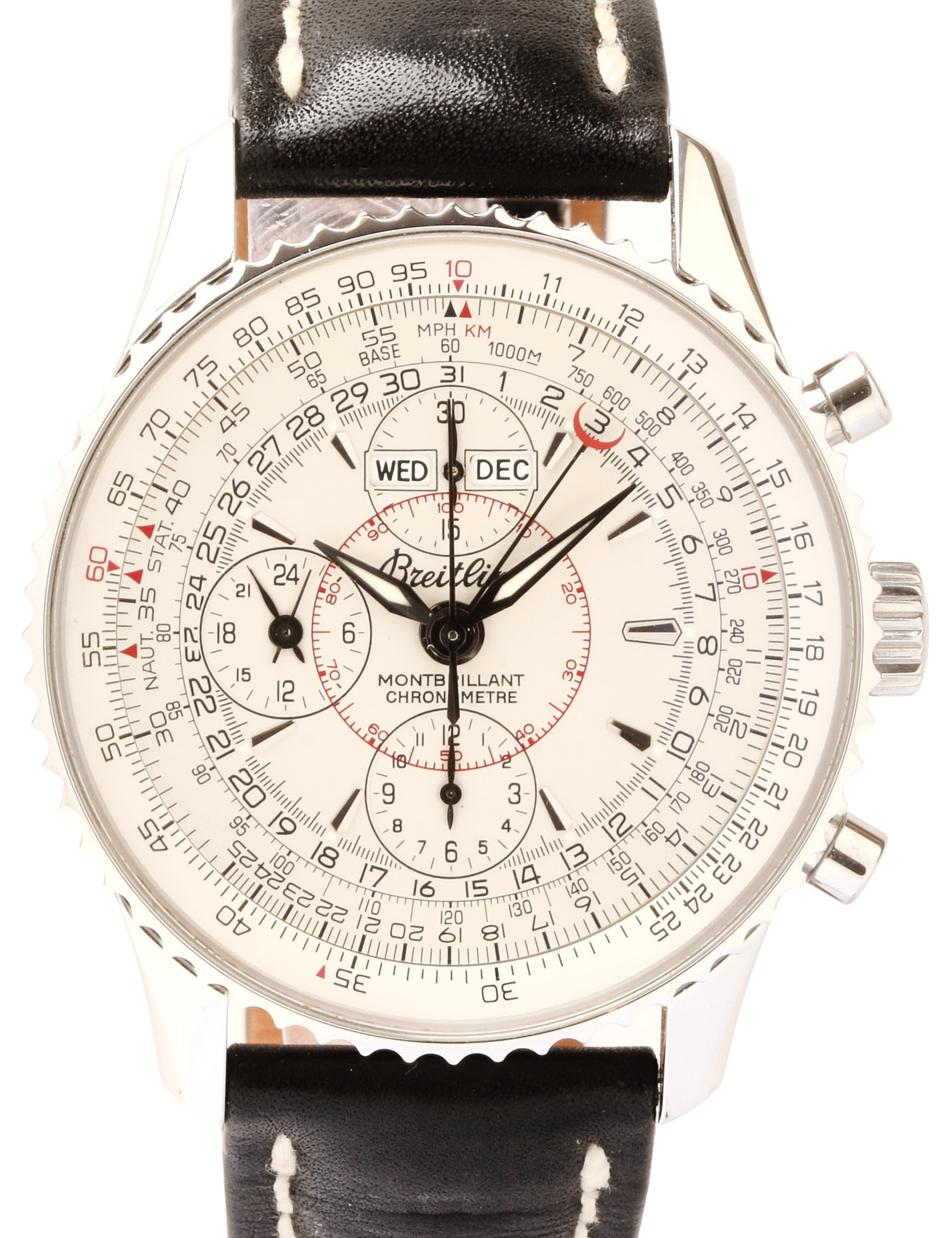 Leon Breitling founded Breitling in 1884 in Grenchen, Switzerland. The luxury sports watch world would never be the same. Breitling and his heirs (who owned the company through the 1970s) focused heavily on chronographs — timepieces that can double as stopwatches with the push of a button. They created one of the first wrist-worn chronographs in 1915, and in 1952 released the Breitling Navitimer, a beloved pilot’s watch with a logarithmic slide rule integrated into its rotating bezel.